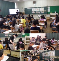 『Unit6 Alphabet アルファベットで文字遊びをしよう』の単元で、「えいぞうを見て、アルファベットの小文字について知ろう」の学習課題に取り組んでいました。乗りのよい音楽に合わせて学習できるので、とても楽しそうに取り組んでいました。