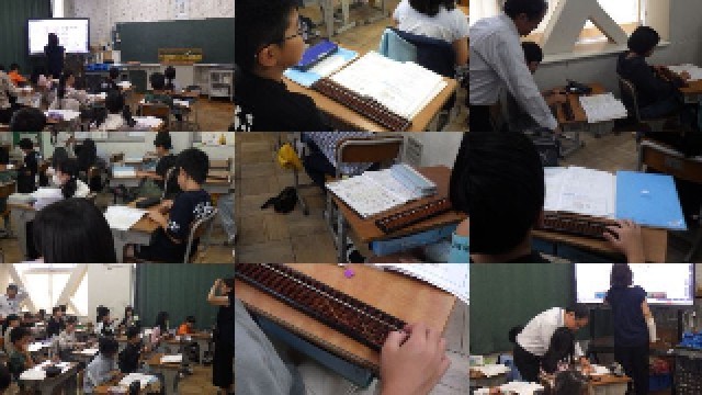 『そろばん』の単元で、そろばんを使って、小数や大きな数を表したり、加減計算をしたりする学習に取り組んでいました。3年生でも学習していますので、思い出しながら頑張っていました。保護者の皆様が小学生であった時は、算数でそろばんの時間は数時間あったと思います。現在は、1時間のみです。普段の生活の中では、ほぼ使わなくなってしまいましたので、学校でのそろばんの時間自体が、日本の伝統文化(江戸時代の庶民の教育機関であった「寺子屋」では、「読み、書き、算術(そろばん)」が教えられていました。)に触れるという側面もあるようです。昭和の時代は、商店の方が、よくそろばんを弾いて計算をしてくれていました。