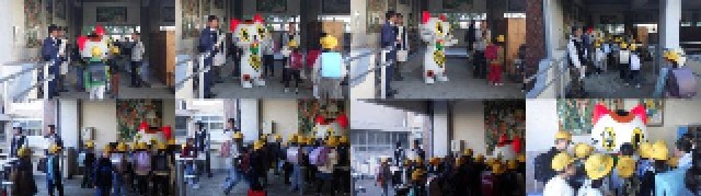 PTAあいさつ運動の2日目です。昨日の西側に続き、本日は東側に「トコタン」登場です。子どもたちの元気なあいさつの声が響いていました。