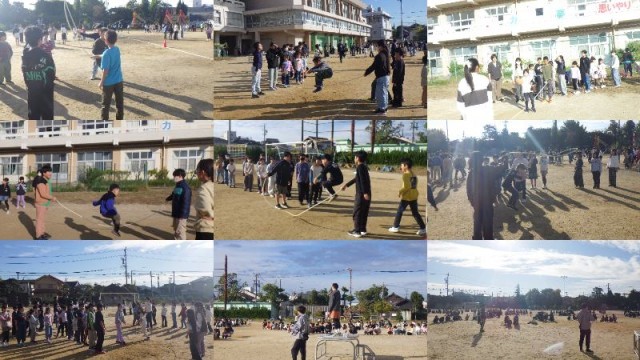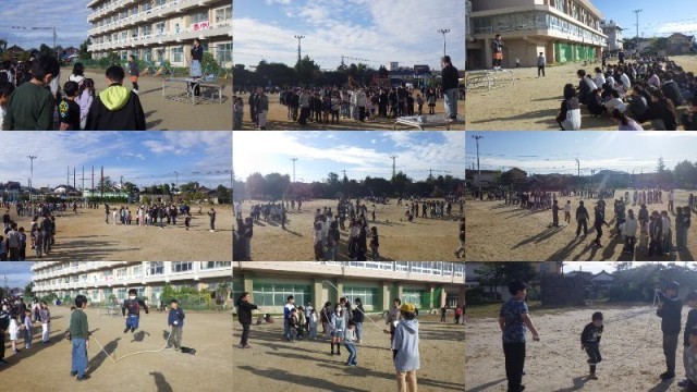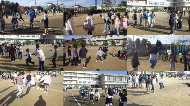 12月11日(木)の「ペア大なわ大会」に向けて、ペア大なわとび練習が始まりました。8の字跳びを5分間で合計何回跳べたかを競います。ペアの高学年児童が、低学年児童にやさしく声かけをしてスタートするタイミングを教えたり、みんなで「はい、はい」とリズムを刻んだりと、みんなで助け合い、支え合っている場面をたくさんみることができました。次回の練習は11月27日(木)のHMの時間です。