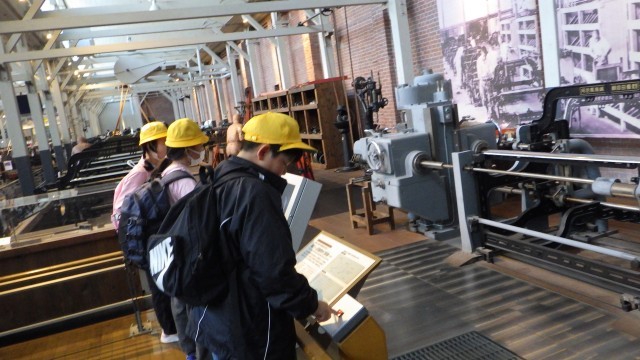 日本製鉄では、実際に鉄の塊(スラブ)をカットするところを見ました。トヨタ産業技術記念館では、工場機械や車の発展について学習しました。
