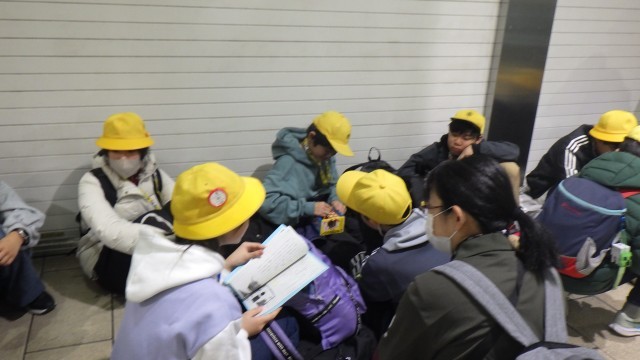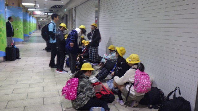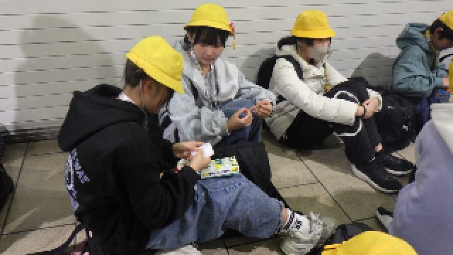 無事に名古屋駅に着きました。トイレを済ませて、タブレットをWi-Fi接続し、新幹線までの時間を待っています。ゲームをする子、会話を楽しむ子、少しずつ仲間意識を高めつつあります。