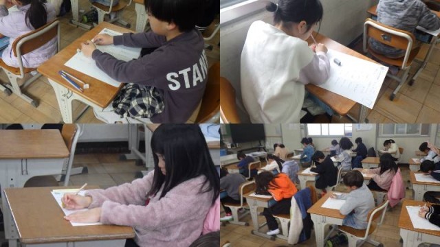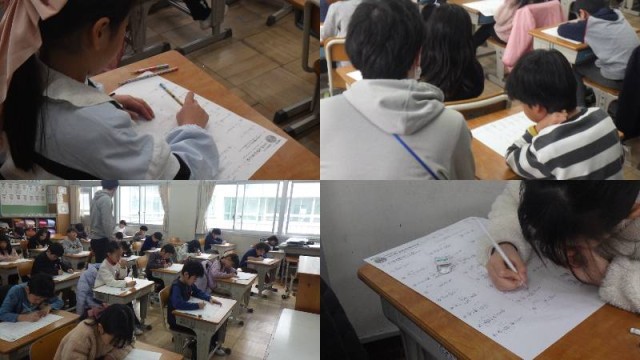 「2年の漢字まとめテスト」の2回目です。3連休でしっかり勉強してきたのでしょう。よくできていました。みんなきっと自信があると思います。途中で、このテストがいつ返ってくるか気になった児童が、先生に聞いていました。先生は頑張りを賞賛しながら、できるだけ早く返せるようにすると伝えていました。結果を早く知りたいのですね。