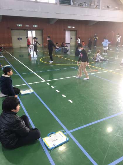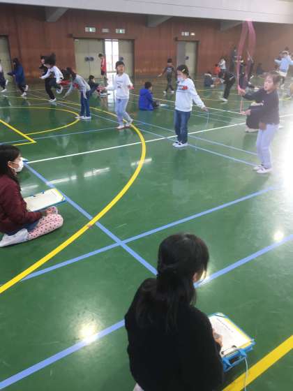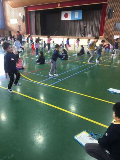 2年生が短縄大会を行いました。ペアの4年生に数を数えてもらい、得意な種目で挑戦しました!