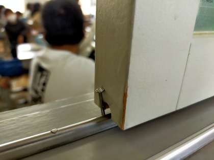5年2組で換気の工夫を発見しました!最近寒くなってきて窓を閉めたくなりますが、コロナや風邪の予防のためにも換気は重要です!窓を開ける目印となるテープが貼ってあったり、釘を打ったりして閉まらないようにしてありました!