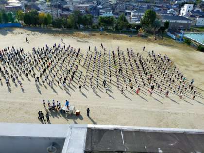 今週土曜日の運動会に向け、2回目の全体練習を行いました。開会式の様子です。