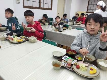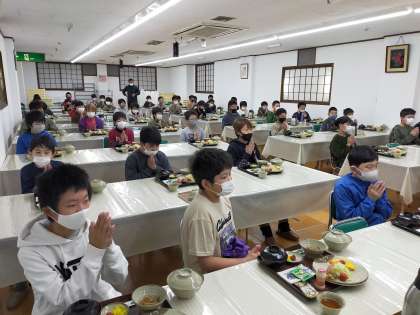 男子は朝ごはん、女子は若草山の散歩で2日目をスタートです!