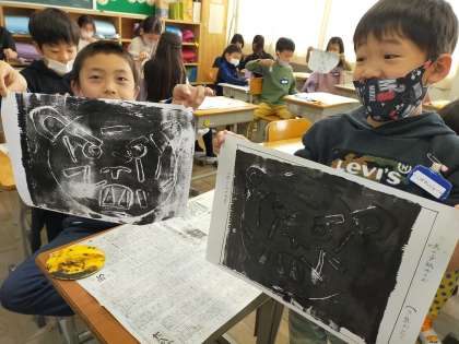 11.18 紙版画 2年3組
