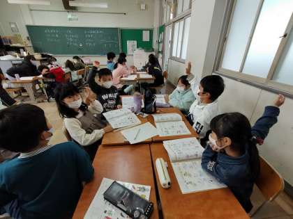 「どれにしようか」「これが楽しそう!」教科書を見ながら、これから何を作るか、楽しそうにグループで話し合っています。