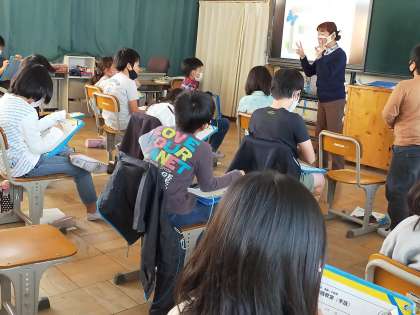 5.6時間目に社会福祉協議会の方などをお招きし、福祉実践教室を行いました。手話の仕方や、耳の聞こえない人とのコミュニケーションの仕方などを学びました。