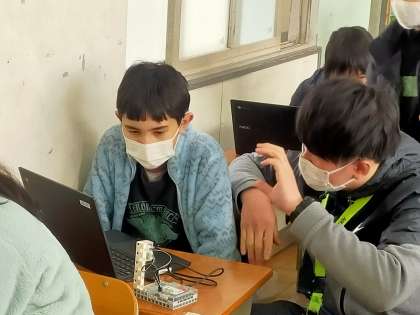 プログラミングで信号機を作っていました。パソコンに指示を打ち込み、正確に動くようにしていきます。ICT支援員の方にも入っていただいての授業ですが、とっても難しそうです!