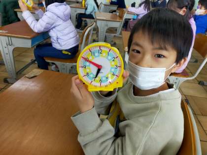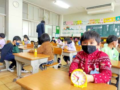 先生が「6時50分!」と指示を出すと、全員が言われた時刻に時計を合わせます。多くの子が時計を理解できるようになりました!