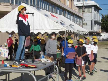 だいたい準備ができてきたので、児童会の子たちが開閉会式の練習を開始しました。