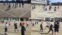さつまいも畑の草取りです。力を合わせて、きれいにしてくださいね!