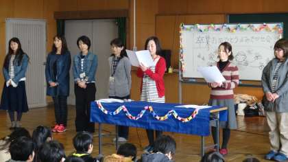 3月10日(木)昼放課にがらがらどんのもりのみなさんによる読み聞かせが行われました。今日は卒業を目前にした6年生の子たちに向けて詩の朗読でした。お気に入りの詩、6年生のみんなに伝えたい詩が次々に朗読されました。心に響く言葉がたくさんありました。校長先生や担任の先生方も思い出の詩を紹介しました。新しく始まる生活に不安と期待を抱いていると思いますが、来週18日には胸を張って常滑西小学校を巣立っていってほしいと思います。