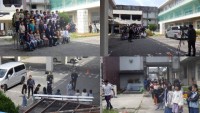 一斉下校で一列で下校しました。工事・交通誘導員の方へのあいさつもできました。