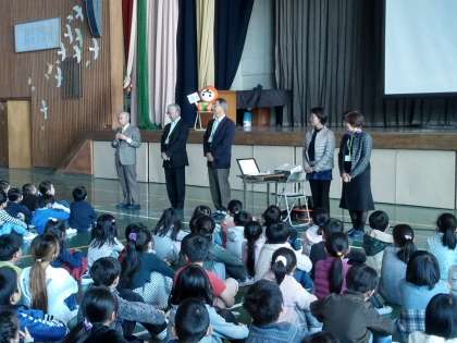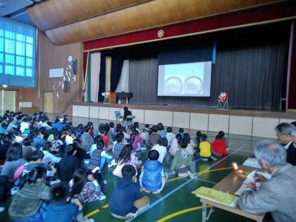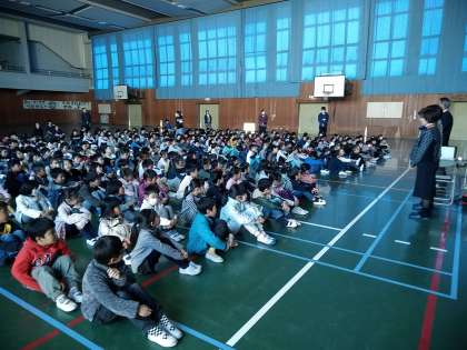 1〜3年生までの子たちが集まって人権教室を行いました。人権擁護委員の方の紙芝居やクイズを交えて人権について深く学びました。