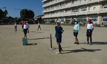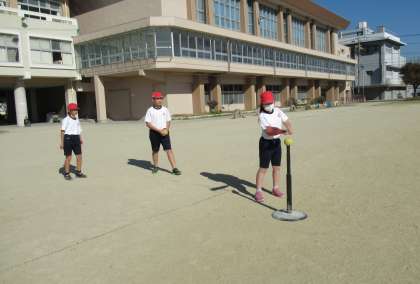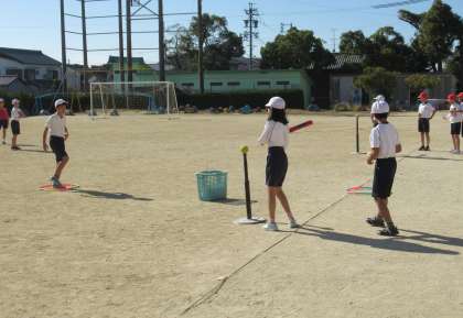 5年生は、体力を高める運動として様々な種目に取り組んでいます。2組は、シリーズ1として長縄飛びと800m走をしました。今日はシリーズ2として、短縄飛びとTボールをしました。久しぶりの短縄跳びは、種目によっては振り出しに戻っている子もいましたが、お互いに刺激を受け合ってがんばっていました。Tボールは、野球の苦手な子も楽しく取り組めるように工夫されたスポーツです。今日は始めなのでキャッチボールやTバッティングを主にしました。だんだんいろいろな基礎を遊び感覚で養えるように進めていきます。