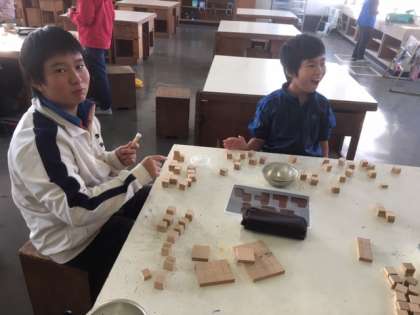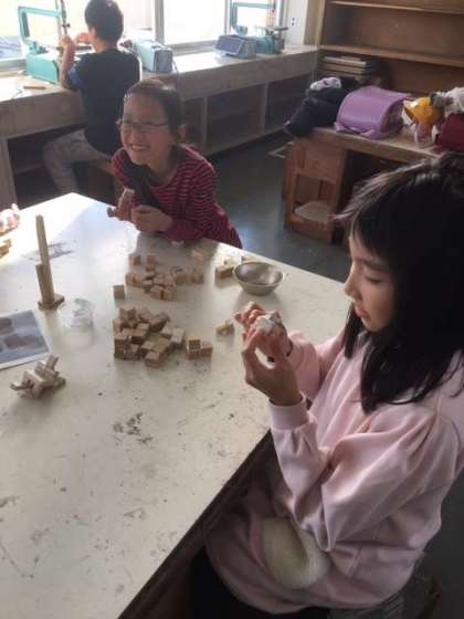 2学期最後のクラブでは、気を立方体に切って、パズルを作りました。