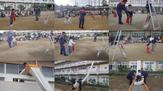 本日の5限は、火災避難訓練でした。全校児童が全員運動場へ避難するのに避難開始から3分40秒ほど、人員点呼完了までは7分34秒でした。児童数648名ですので、時間はかかりましたが、比較的速やかに避難できました。「おはしも」(押さない・走らない・しゃべらない・もどらない)を守って立派にできたと思います。消防署の方からは、慌てず避難してけがをしないことが大事であるとご指導いただきました。また、先生の指示を聞いて上手に避難できたと褒めていただきました。避難訓練終了後は、1~4年生が消火器訓練(1年生は消防車・救急車見学含む)、5年生が煙体験、6年生が救助袋体験を行いました。もしもの時に、必ず自分の命を守るために、今日の訓練を忘れないでほしいと思います。