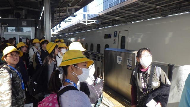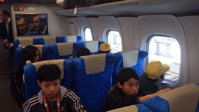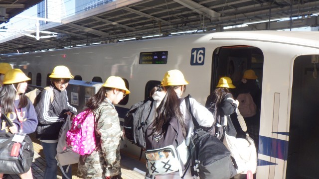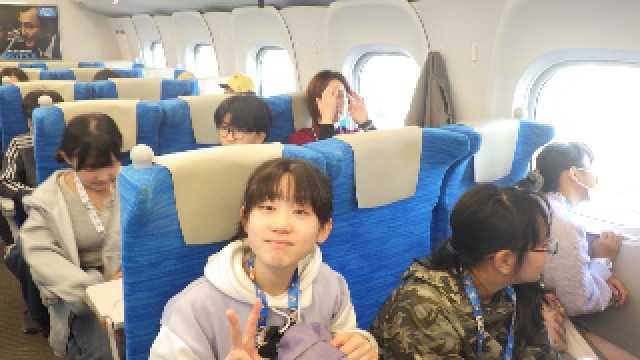 新幹線の都合で、予定より5分遅れの出発となりました。乗ってすぐは元気でしたが、朝早かったせいか、みんな眠たいようです。タブレットでしっかり学習している子もいます。また、ゲームを楽しんでいる子もいます。