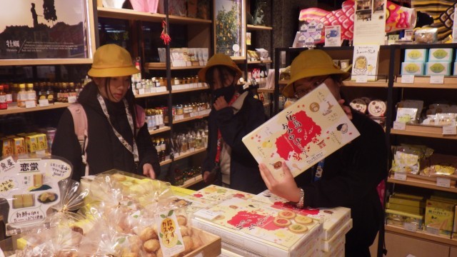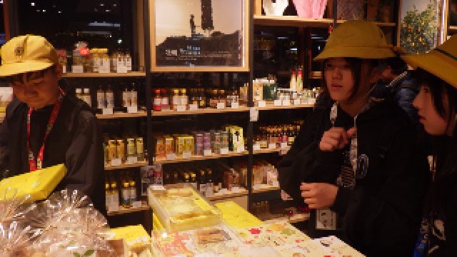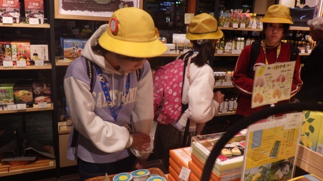 被爆体験講和を終え、折り鶴タワーで買い物を楽しんでます!明日使う分も考えて、お土産を買ってます!