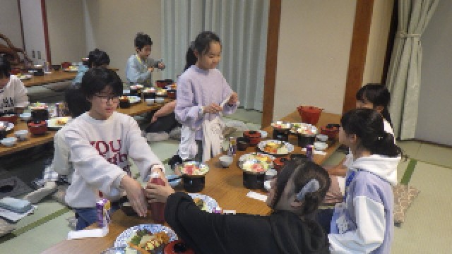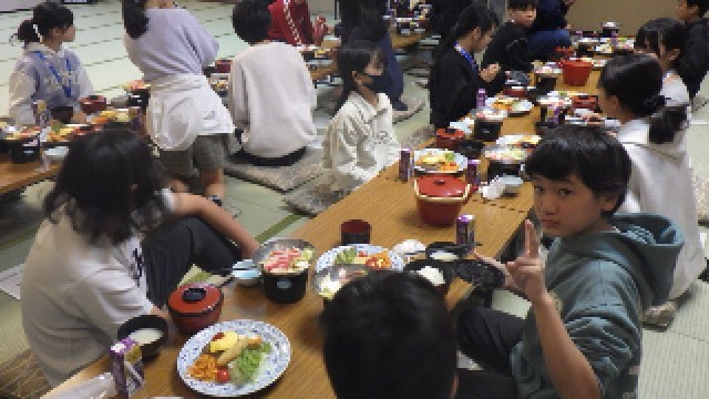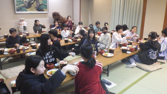仲良くなったみんなと「乾杯!」で夕食スタートです。夕食終了後に振り返りタイム、入浴で本日の行程を終え就寝です。