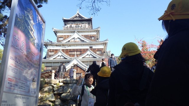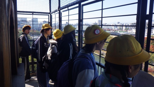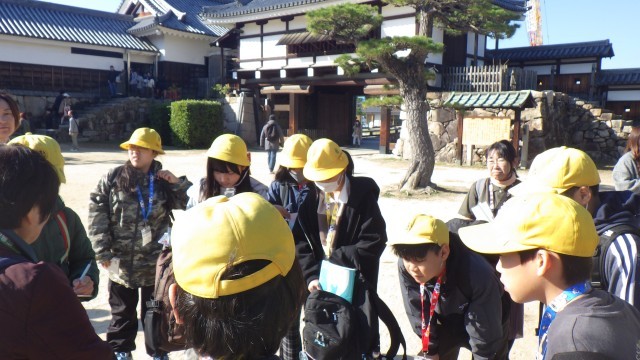 こちらでも、ボランティアガイドさんに説明を受けて研修を進めています。みんな熱心にメモをとっています。