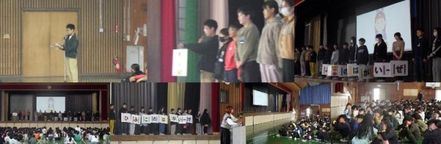 本日から12月10日まで人権週間です。今朝、人権集会を行いました。そこで各学級で話し合った行動宣言の発表がありました。