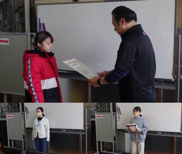 本日の朝会は、レスリングの表彰からスタートです。講話担当の先生からは、あいさつで自分の気持ちや感謝の気持ちが伝わるという話がありました。明るくハキハキとしたあいさつや返事が増えるといいなと思いました。生活広報委員からは、1月の生活目標の振り返りと、今週の生活目標「たくさんの人とあいさつをしましょう」の紹介がありました。総務委員からは、スマイルキャンペーンの振り返り報告、放送委員からは先生クイズの予告、ダンスクラブからは発表会の告知がありました。最後は、来年度から変わる「図書館の使い方」、「登校時間の変更」について、試行期間の説明が、それぞれの担当の先生からありました。