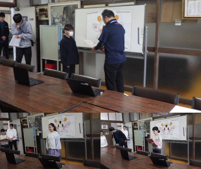 今年度初の朝会は、学級委員と各委員会の委員長の任命がありました。学級委員を代表して6年2組の学級委員が、委員長を代表して美化委員長がそれぞれ任命状を受け取りました。リーダーとして、存分に力を発揮することを期待しています。校長からは、その任命に合わせて、選ばれる側の責任、選ぶ側の責任の話がありました。学級も委員会もチームとして団結して頑張ってほしいとのメッセージです。交通担当の先生からは、登下校についてのルールの話がありました。本日の帰りからすぐに実践できることを期待しています。児童会担当の先生からは、今年度から、朝会の回数が減って、その分、各委員会が活躍するHM(ハッピーモーニング)が増えるお話がありました。原則、朝会同様にオンラインで行いますが、他ごとをしながらではなく、教室でも集中して参加できるようにしようとの呼びかけがありました。
