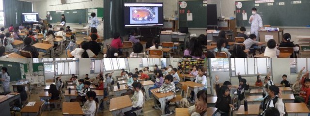 食の指導で、「きゅうしょくのひ・み・つをしろう」との学習課題に取り組んでいました。ちょうど調理場の仕事についての動画を視聴しているところでした。みんな真剣に、そして夢中になって視聴していました。その後、栄養教諭の先生から出されるクイズにも楽しそうに答えていました。本日は、1年2組でも実施されました。1年3組は来週です。今週は、3年生でも食の指導が行われます。