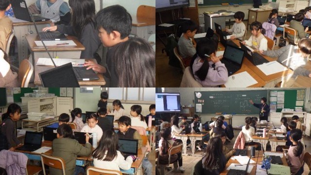 『ふゆをたのしもう』の単元です。むかしの遊びについて、「あそびかたをしらべよう」の学習課題に取り組んでいました。前時に一度遊んでいますので、各自で課題を決めて調べていました。「ふくわらい」、「けん玉」、「こま」、「おはじき」、「かるた」などなどです。タブレットを使って調べ、プリントに遊び方や遊び方のコツをまとめていました。