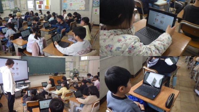 『おとのスケッチ(3)』の単元です。「きらきらぼし」を鍵盤ハーモニカで演奏しています。先生のピアノに合わせて、一音一音を丁寧に奏でていました。
