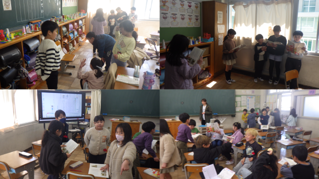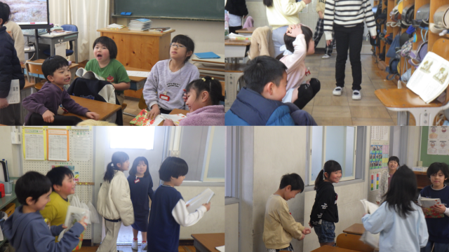 「おちば」の音読劇の練習中でした。暗記をして、身振り手振りを加えて本番さながらの練習をしていたグループもありました。みんなとても楽しいそうに取り組んでいました。発表の日が楽しみです。