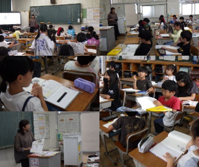 『ちいちゃんのかげおくり』の単元で、新出漢字の学習に取り組んでいました。漢字スキルを使って、「想」「写」「真」の3文字の学習です。全員で画数、部首、使い方や言葉を確認してから各自のペースで書く練習となります。学習スタイルが確立されているので、とてもスムーズに学習が進んでいました。また、自分の名前の漢字が登場したことで、喜んでいる児童、その児童に温かな言葉をかける児童もおり、難しい漢字の学習ですが、温かな雰囲気の中で、みんなが楽しみながら取り組んでいるのが印象的でした。