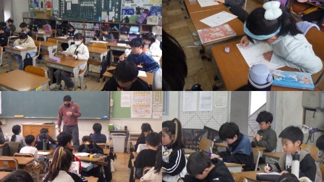 『書き表し方をくふうして、物語を書こう』の単元です。教材名は「たから島のぼうけん」で、想像を広げて物語の構想を練っているところでした。「知多の友」を使って、想像した物語の内容を書き出しているところでした。毎年、素敵な物語が完成します。保護者の皆様、楽しみにしていてください。子どもたちの想像力って、本当に素敵です。