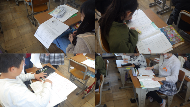 学習のまとめのプレテストをやっていました。漢字をとても丁寧に書いていましたので、日頃から意識をしているのだろうと思います。プレテストの結果も気になるようですが、プレテストの振り返りから、自信をもって本番のテストに挑めるようにしてもらいたいと思います。