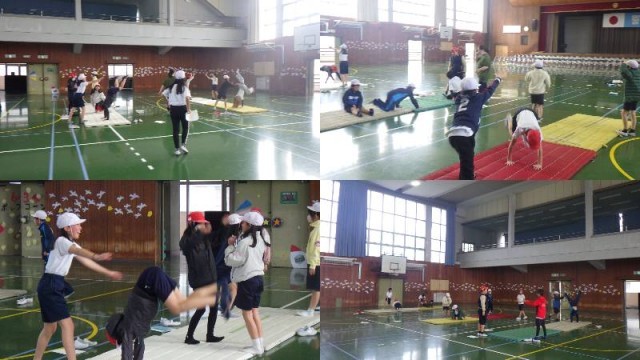 4年生のマット運動では、これまでに習得した「前転」や「後転」に加え、自分ができる技を組み合わせた「連続技」の完成を目指します。今日は、難易度の高い「補助倒立」の練習に取り組んでいました。補助する側は、友達が安全に練習できるように、腰や足を支えます。お互いに励まし合って取り組んでいる姿が印象的でした。単に運動スキルの向上だけではなく、相手を思いやる心も、マットの上で育っているようです。