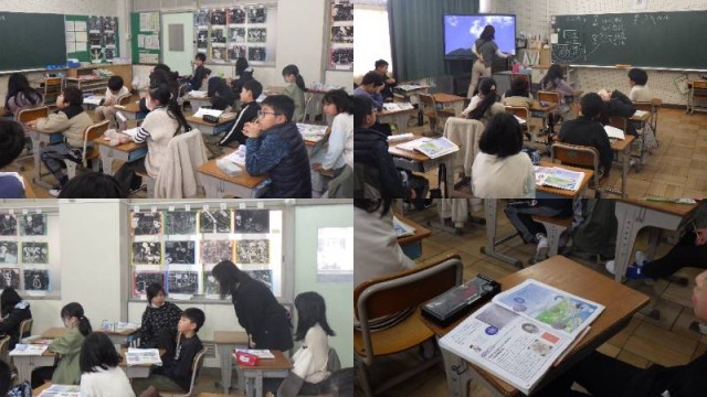 『学習のまとめ』の時間です。「平和」の練習中でした。1年間の学習を振り返り、文字の大きさや組み立てなどに気をつけて集中して取り組んでいました。本日はまだ清書の提出はないとのことなので、これから練習を重ね、授業最終日には、自分なりに納得のできる字を書き上げることを期待しています。