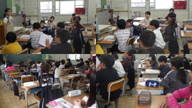 4年生の書写担当の先生が、今年度から新しくなりました。何と、小学校1年生から中学校3年生まで、すべての担任を経験した先生です!先生の自己紹介が終わり、子どもたちが順番に自己紹介をしているところでした。みんなとても張り切って自己紹介できていました。すてきな出会いの時間であったと思います。