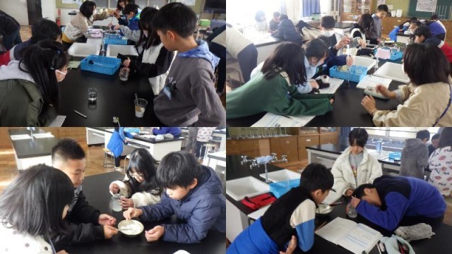 『もののとけ方』の単元です。前時の実験結果から、食塩やミョウバンが水に溶ける限度についてまとめました。そして、新たな問い「もっと水に溶かすには」の解明に取り組んでいました。水の量を3倍にして、必死にかき混ぜているところです。さあ、どんな結果となったのでしょうか。ご家庭での話題にしてみてください。