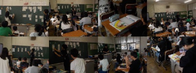 『言葉から想像を広げて(絵)』の単元で、「読書感想画に向けた練習をしよう」の学習課題に取り組んでいました。自分が今までに感動した場面、景色などをテーマに下書きに取り組んでいました。構図で悩んでいる児童が多かったようですが、さすがは6年生です。自己調整学習に取り組んできていますので、他者との交流や観察をとおして、自分の学習をより効率的に、より深めることができるように、夏休みの宿題でかいたみんなの絵日記を参考にする児童もいました。