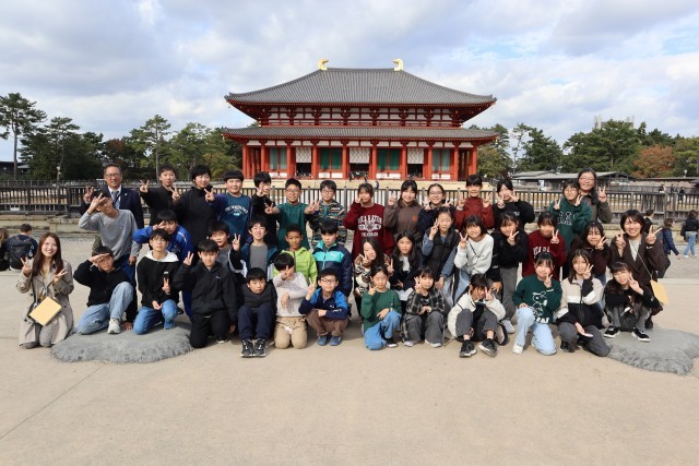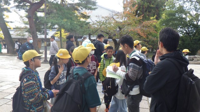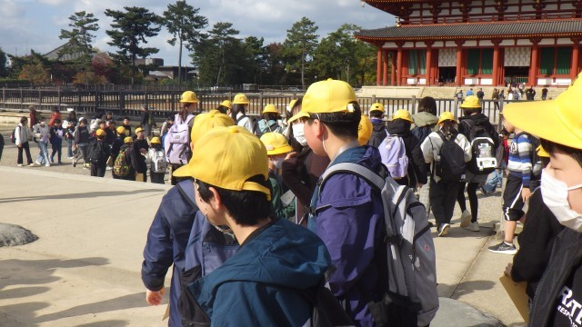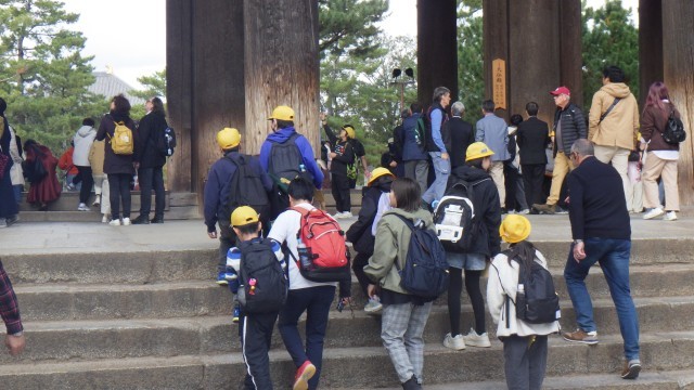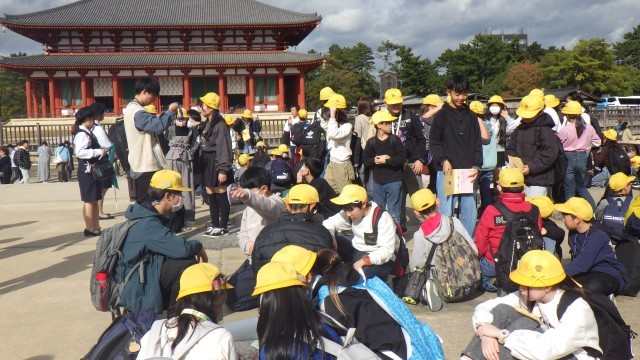 奈良分散研修が順調に進んでいます。続々とチェックポイントに到着して、大仏殿に向かいます。