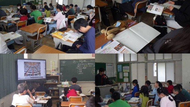 【日本国憲法と政治の仕組み】の単元です。めあては、「みんながハッピーな社会をつくるための政治のはたらきを知ろう」です。単元の学習の見通しをもつ時間でしたが、積極的に発言(多くのつぶやき)する児童が多く、学習課題に対して、大変意欲的取り組んでいました。