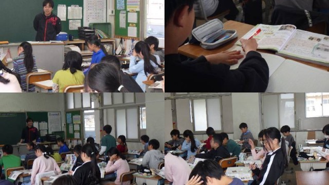 これまでの学習の総復習の時間です。アメリカの人気番組を真似て、グループ対抗クイズバトルの形式で行っていました。先生からの英語の問いを集中して聞き取り、グループでシンキングタイム!答えを一つに決めて紙に記入して提示します。問題は、得点パネルから選ぶことになっており、このパネルにも仕掛けが・・・。ゲームを楽しみながら、自然と復習もしっかりできる時間となっていました。いつも盛り上がっている外国語の授業ですが、本日はいつもの何倍も盛り上がってました!
