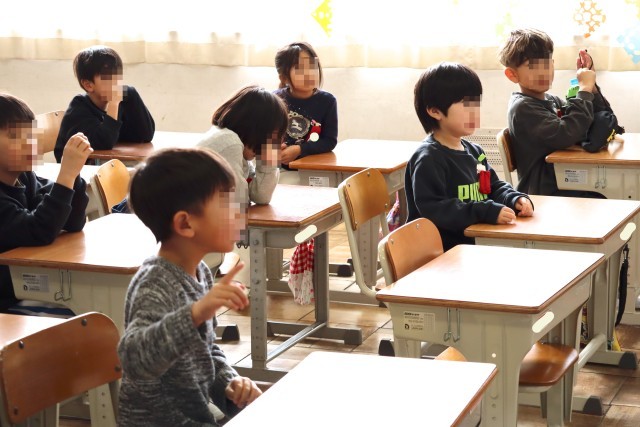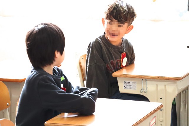 1年赤組はみんなの体調確認をします。みんなに会えて元気いっぱいです。