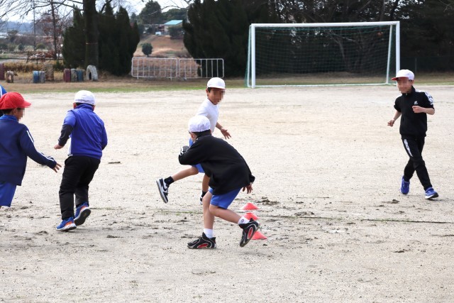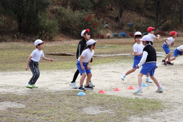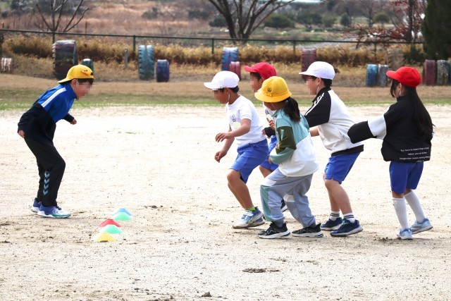 2年赤組は体育の学習です。鬼ごっこで体を動かします。