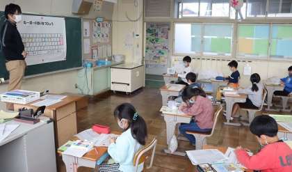 一人一人が、タブレット(キーボード付き)を使って学習するようになっていきます。