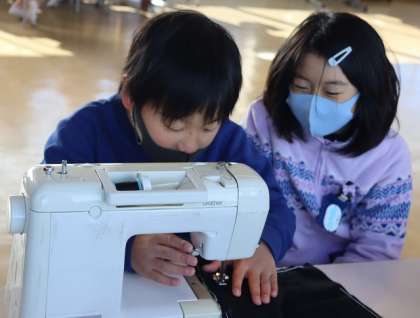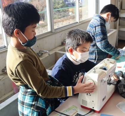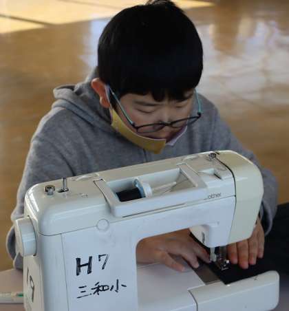 ミシンを使って、ランチョンマットを作っています。